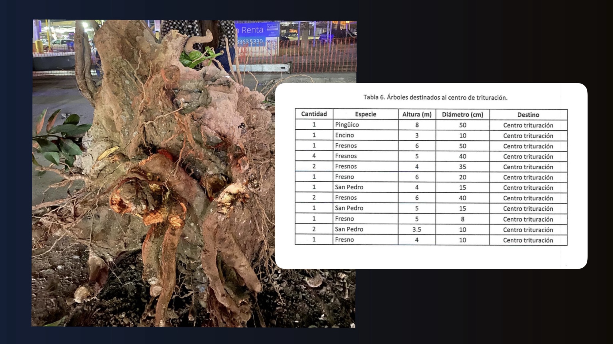La frustración y tristeza de los colectivos presentes en la remoción nocturna se intensificó ante la ausencia de supervisión oficial. Aunque el director municipal de Medio Ambiente, Marcelo Sánchez, aseguró vía WhatsApp haber estado presente “fuera de la valla de donde se realizaban los trabajos”, los videos documentados por las activistas entre las 9:00 p.m y la 1:30 horas de la madrugada no muestran rastro de él ni de ningún supervisor de Medio Ambiente. En el sitio solo se encontraban trabajadores de la constructora Rotugra, cuadrillas de Parques y Jardines y personal de Telmex resguardando su fibra óptica.